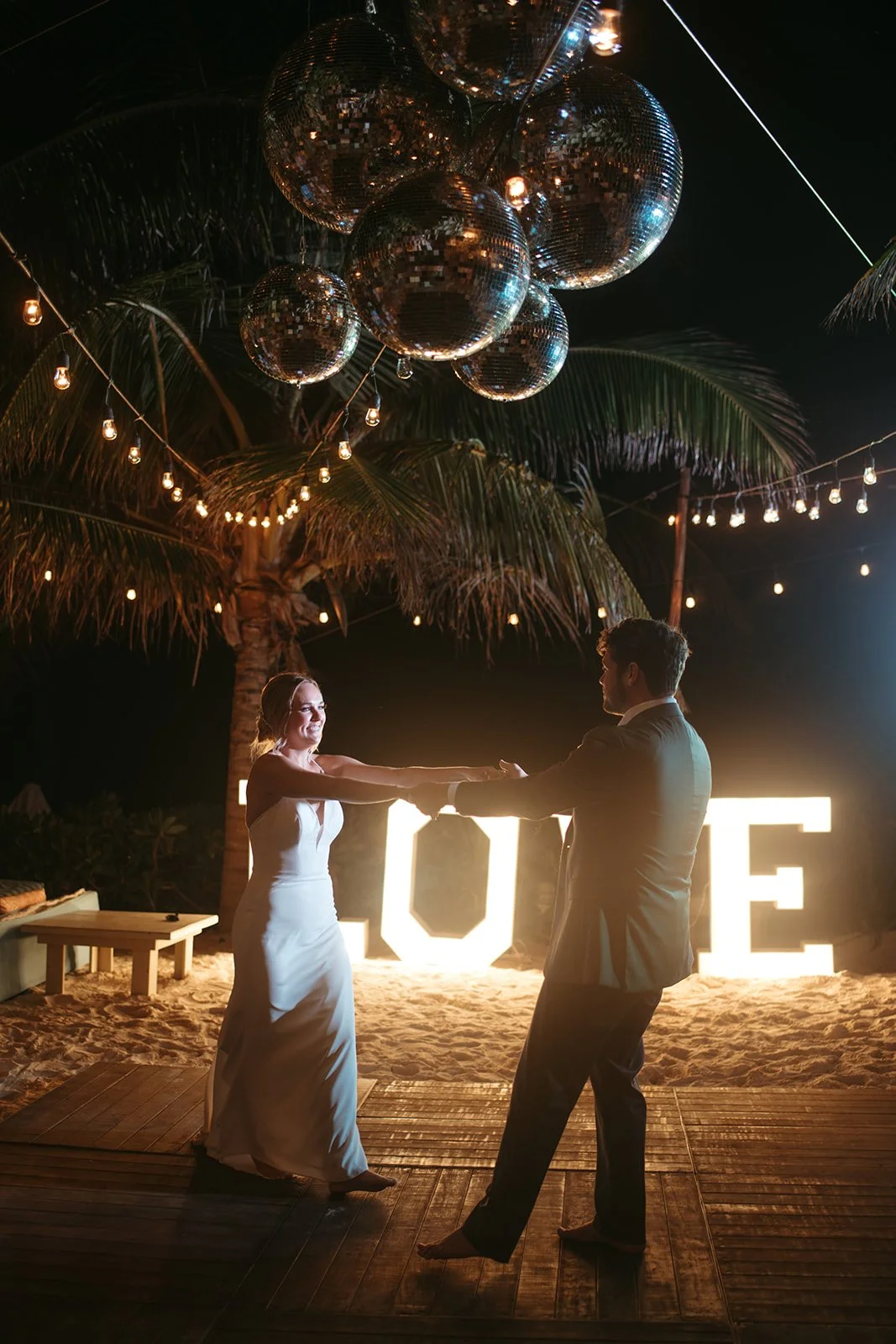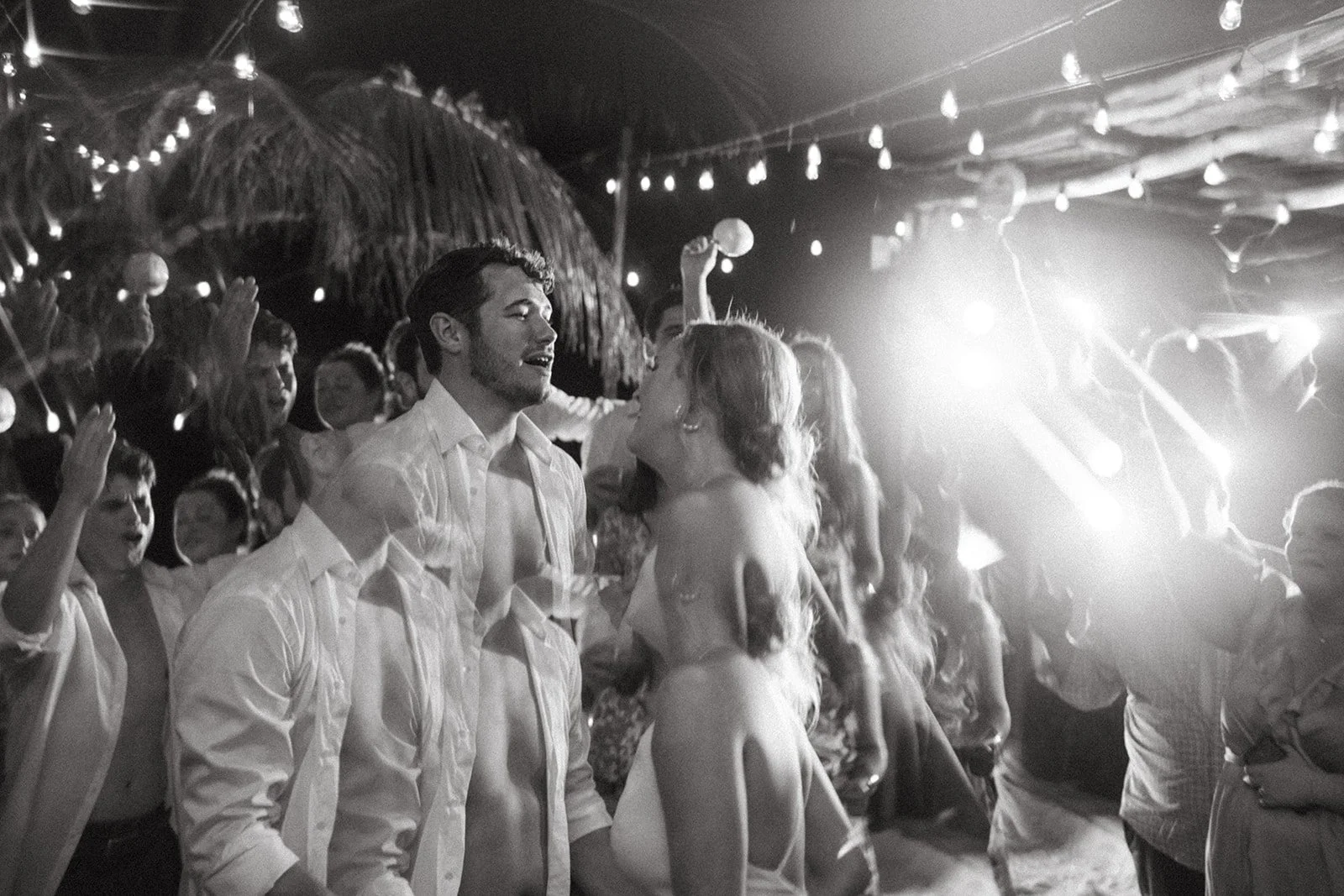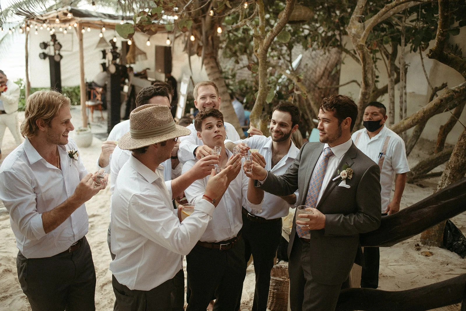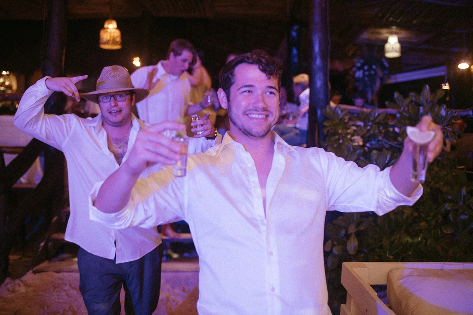 Caroline and Michael's wedding was a celebration like no other, filled with vibrant energy and an eclectic mix of fun elements that left their guests in awe. The couple went all out in creating a lively atmosphere, adorning the venue with shimmering disco balls that illuminated the dance floor with a kaleidoscope of colors. The sounds of a live mariachi band echoed through the air, adding a touch of traditional Mexican charm to the festivities. As the night progressed, guests couldn't resist joining in on the excitement as tequila shots were passed around, creating an exuberant spirit of camaraderie and joy. The combination of the disco balls, the lively music, and the tequila shots ensured that the dance floor was never empty, and everyone danced the night away with pure elation. Caroline and Michael's wedding was an extraordinary affair that perfectly embodied their love for each other and their desire to share the joyous moments of their special day with their cherished guests.