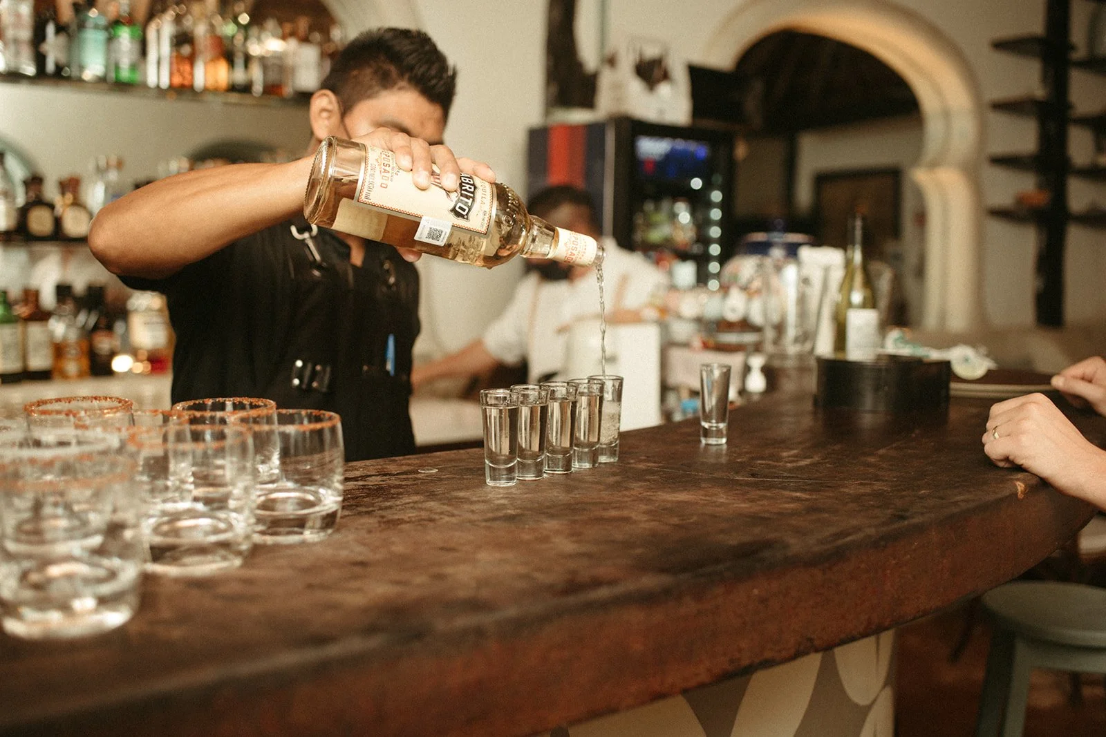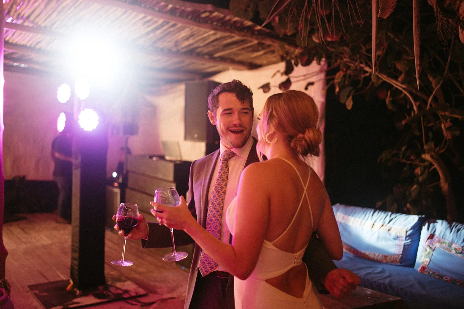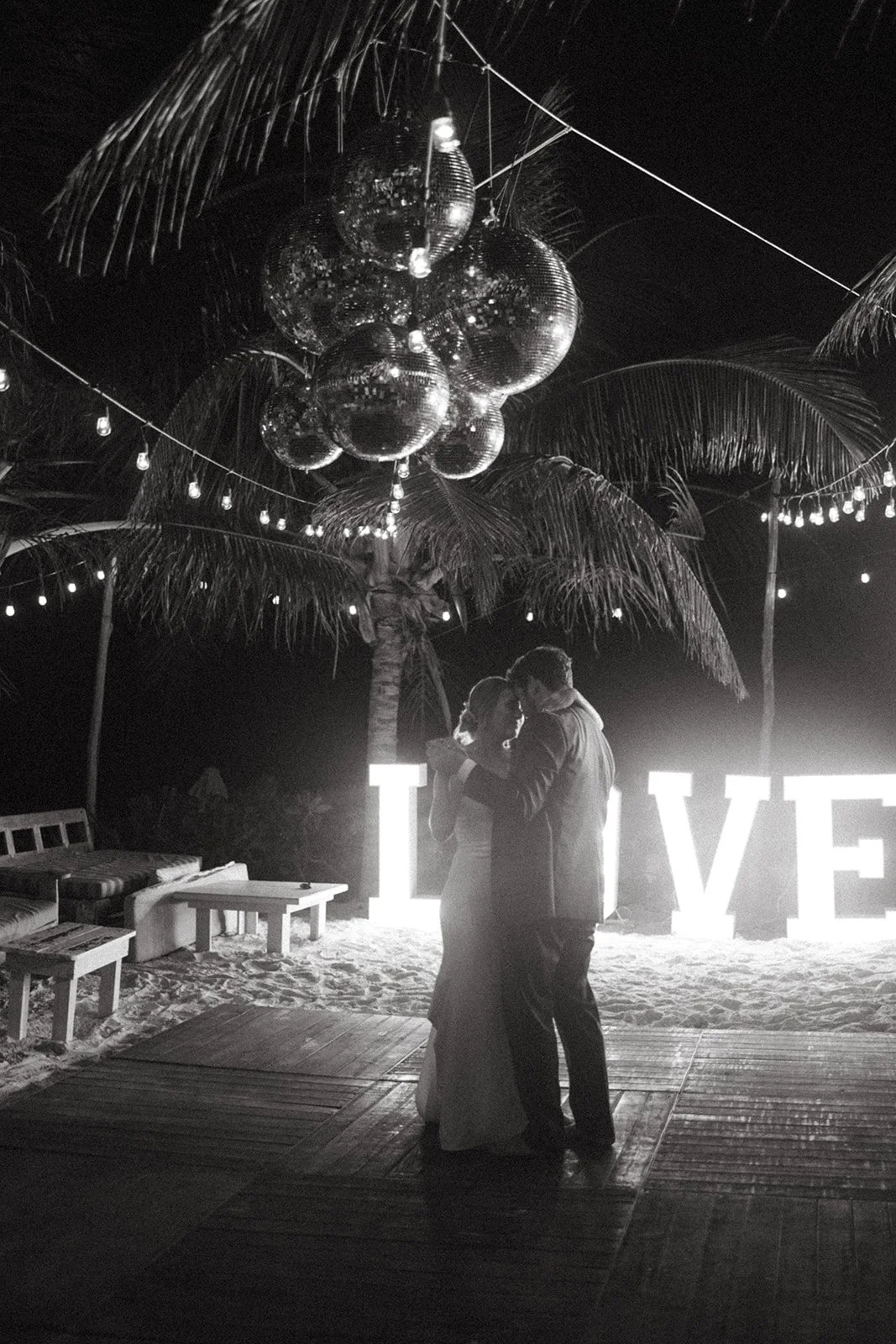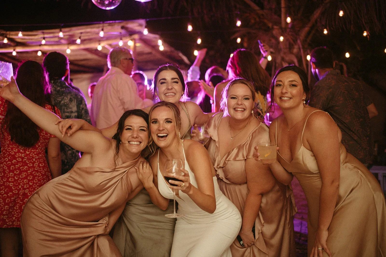 Caroline and Michael's wedding was a celebration like no other, filled with vibrant energy and an eclectic mix of fun elements that left their guests in awe. The couple went all out in creating a lively atmosphere, adorning the venue with shimmering disco balls that illuminated the dance floor with a kaleidoscope of colors. The sounds of a live mariachi band echoed through the air, adding a touch of traditional Mexican charm to the festivities. As the night progressed, guests couldn't resist joining in on the excitement as tequila shots were passed around, creating an exuberant spirit of camaraderie and joy. The combination of the disco balls, the lively music, and the tequila shots ensured that the dance floor was never empty, and everyone danced the night away with pure elation. Caroline and Michael's wedding was an extraordinary affair that perfectly embodied their love for each other and their desire to share the joyous moments of their special day with their cherished guests.